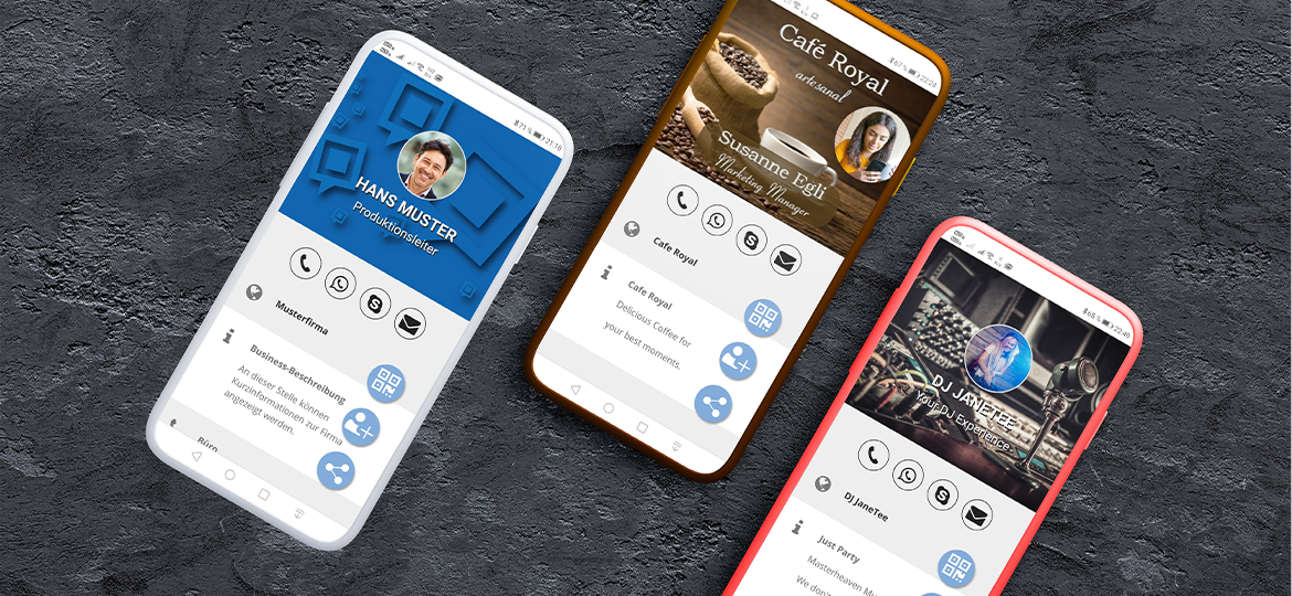 Jede Firma benötigt Visitenkarten für ihre Mitarbeiter. Dank der digitalen Visitenkarten von DynaTag können Kontaktdaten einfach per QR-Code-Scan übertragen und direkt ins Adressbuch übernommen werden. Mit vielen Gestaltungsmöglichkeiten passt sich die VCard Ihrem Unternehmen an. Der QR-Code kann einfach in Ihr bestehendes Visitenkartenlayout übernommen werden oder lassen Sie ein neues Layout durch unsere Spezialisten erstellen. Gerne beraten wir Sie persönlich.